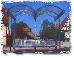 Verwendungszweck entsprechend, ausgestattet. Die tragende Stahlschweißkonstruktion ist feuerverzinkt und kann zusätzlich in allen RAL - Farbtönen pulverbeschichtet werden. Die Tonnengewölbe aus witterungsbeständigem PLEXIGLAS® oder unzerbrechlichem MAKROLON-longlife® sind in der patentierten Spannkonstruktion bewegungsfrei montiert. Die besonderen Prädikate des variablen Bausystems BASIS sind:
