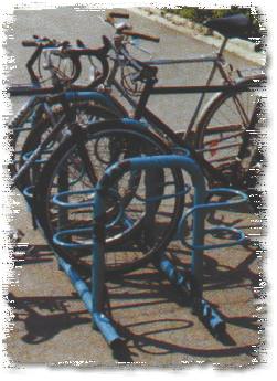 gedankenlos in den Fahrradparker eingestellt wurde. Vorderrad und Rahmen können darüber hinaus - wie bei der BETA - Serie üblich - mit kurzem Seil- oder Bügelschloß bequem am Fahrradparker angeschlossen werden. BETA - Focus bietet das Besondere: