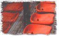 Olympia - Sitzschalen (orange) zum Anschluß an die Stützen der Tragkonstruktion (in Fundamentköcher integriert), Unterkonstruktion feuerverzinkt |