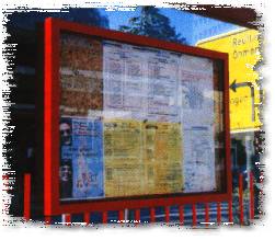 | Fahrplan - Vitrine mit Alurahmen E6/EV1, Klappflügel Maße: 891 x 644 x 30 mm für DIN A1 bzw. 480 x 380 x 30 mm für DIN A3 Frontscheibe: Spiegelglas Verschluß mit Steckschlüssel für Aufpreis: Pulverbeschichtung |